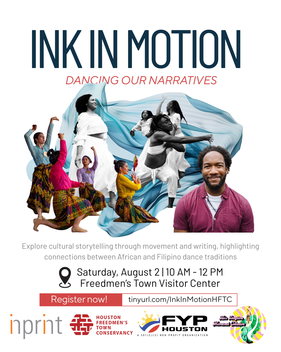 This workshop is in partnership with Inprint, Nia’s Daughters Movement Collective, Filipino Young Professionals for Houston and Houston Freedmen’s Town Conservancy.