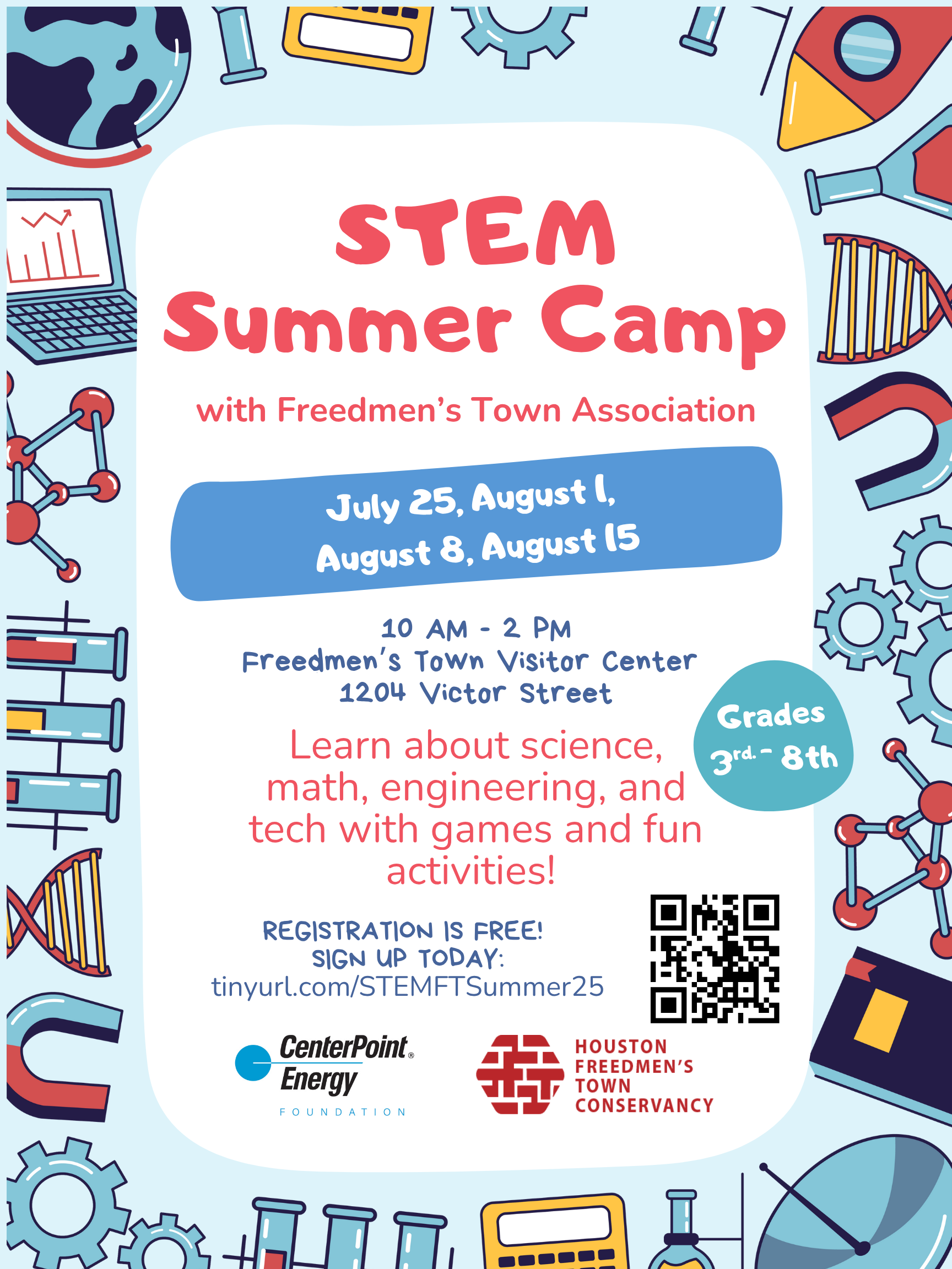STEM Summer Camp 2025 is powered by Centerpoint Energy, Freedmen’s Town Association and Houston Freedmen’s Town Conservancy.