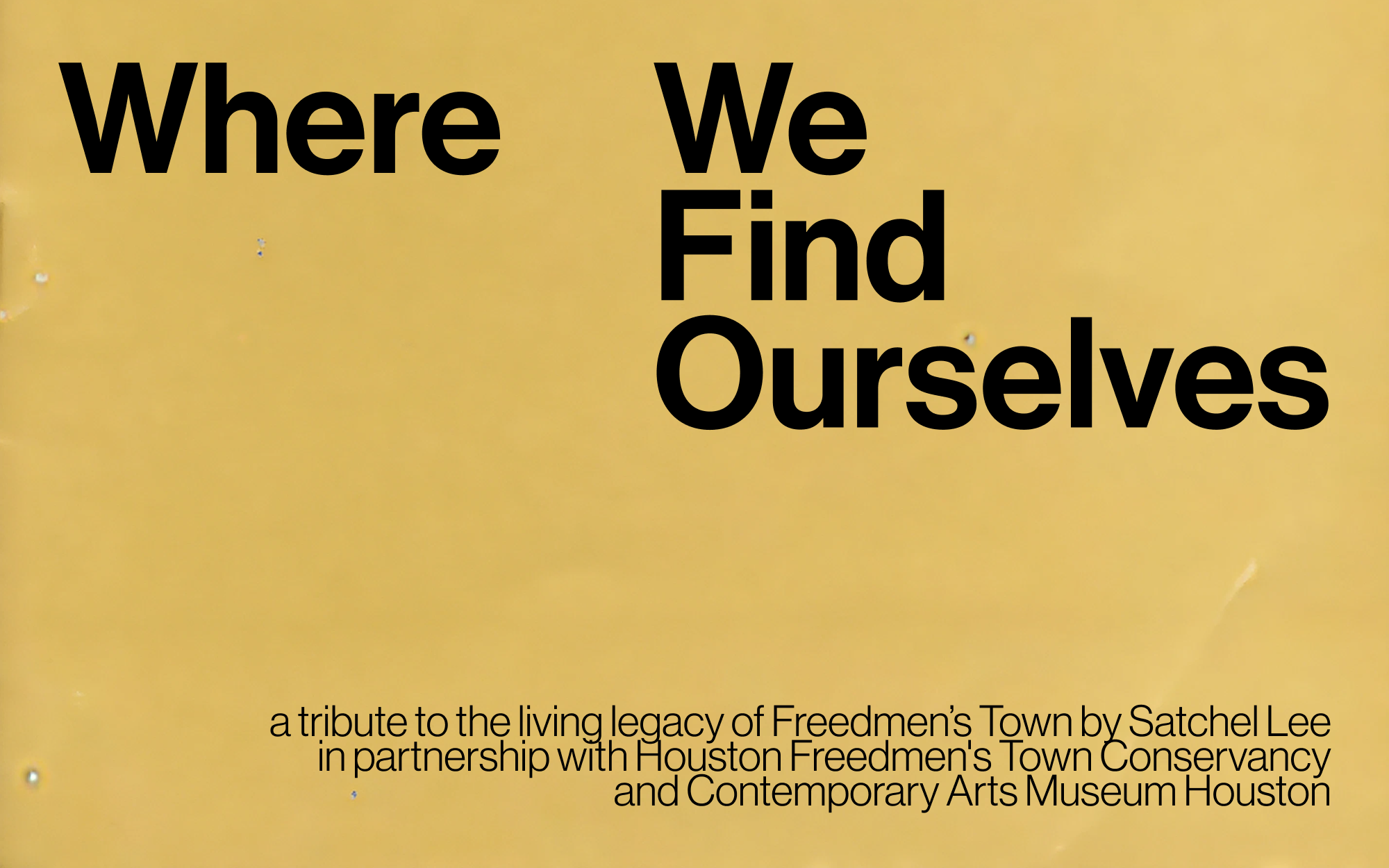 Where We Find Ourselves is a multi-disciplinary investigation into memory, place, and Black perception across generations, centering the historic neighborhood of Freedmen’s Town in Houston. Through photography, film, architectural modeling, and installation, artist Satchel Lee brings a forensic intimacy to the project, placing the South, and specifically Freedmen’s Town, under a microscope. Lee reveals the physical remnants of a once self-sustaining Black community founded by formerly enslaved people and the brilliance embedded in its spatial and spiritual architecture.